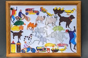 Ein bunter Haufen von 6- bis 13-jährigen stürmte an einem Vormittag im Sommer 2021 als eine der ersten Kinder- und Jugendgruppen das Frey-Haus. Nach einem Besuch der Spielzeugausstellung wurden die Eindrücke in bunten Collagen festgehalten für eine Hommage an das Spielzeug aus Brandenburg an der Havel.